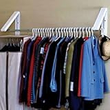 - QuikCloset™ wall mounted garment rack folds away flush to the wall.